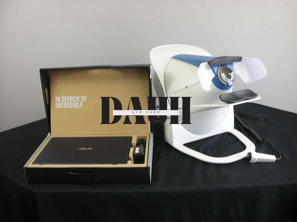 - Headrest with lateral eye shields to allow for measurements without an eye-patch